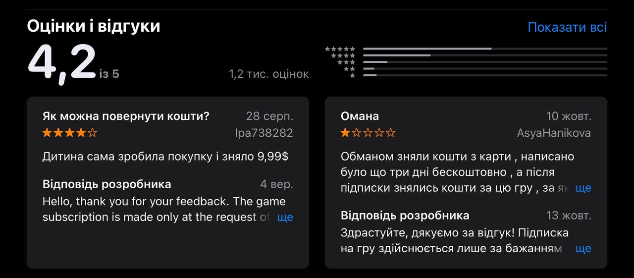 Рис. 6 – Оцінки та відгуки на застосунки