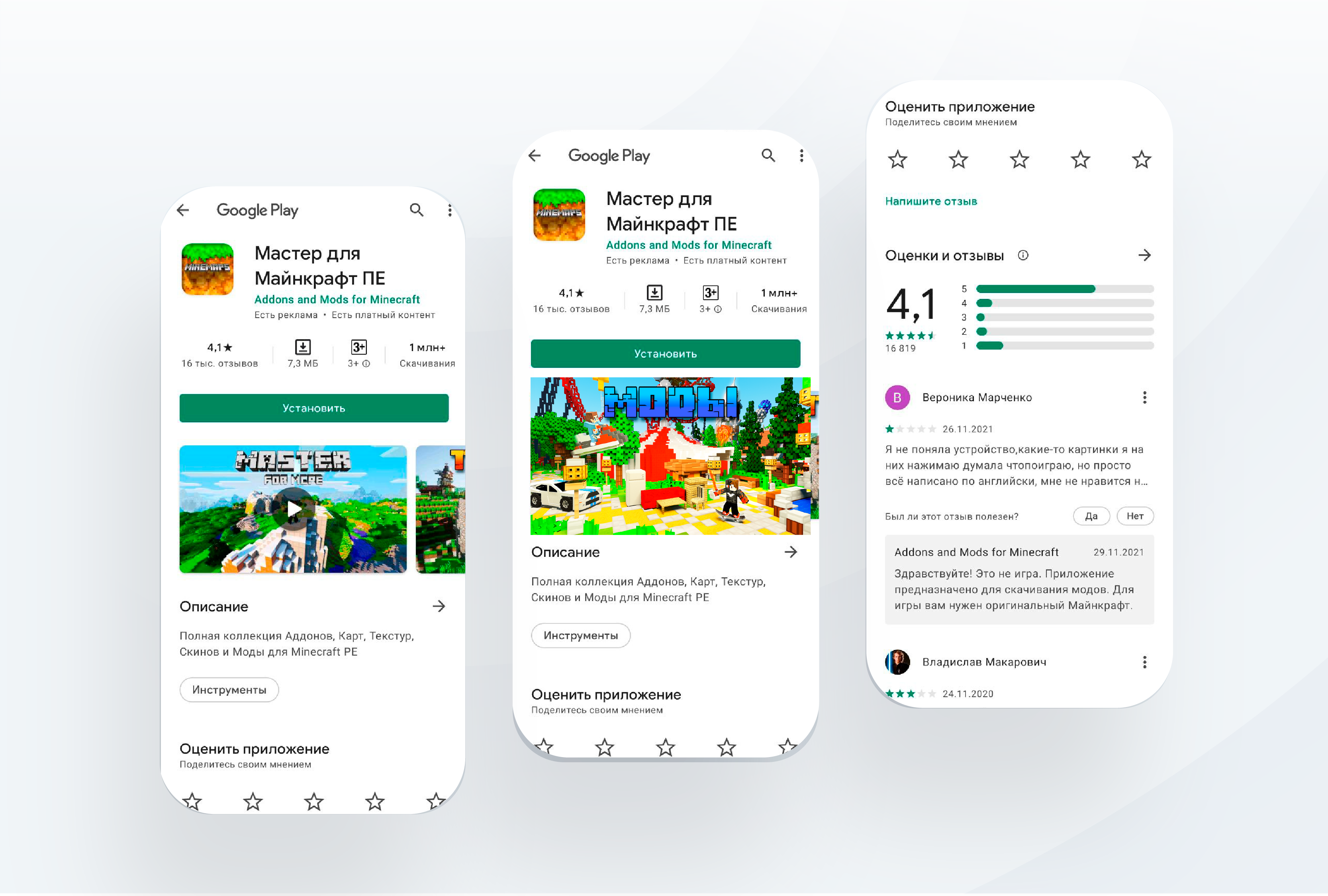 Значок та скріншоти. Відгуки та рейтинг